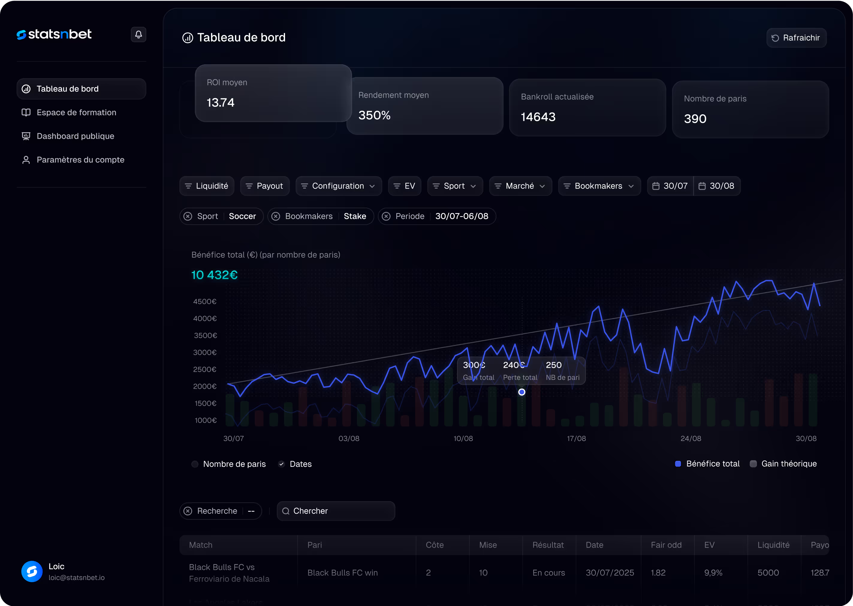 Le value betting n’est pas basé sur des promesses magiques mais sur des lois mathématiques. Sur un pari isolé, tout peut arriver. Mais sur des centaines de paris, les statistiques prennent le dessus. Là où les parieurs classiques jouent avec leurs émotions, vous jouez avec un avantage mathématique prouvé. Résultat : vos gains deviennent prévisibles sur le long terme.